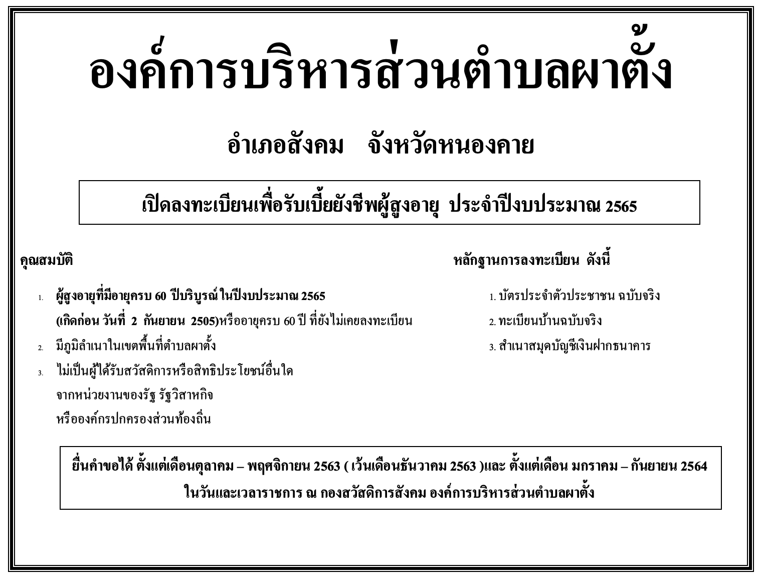 เปิดลงทะเบียนเพื่อรับเบี้ยยังชีพผู้สูงอายุ ประจำปีงบประมาณ 2565