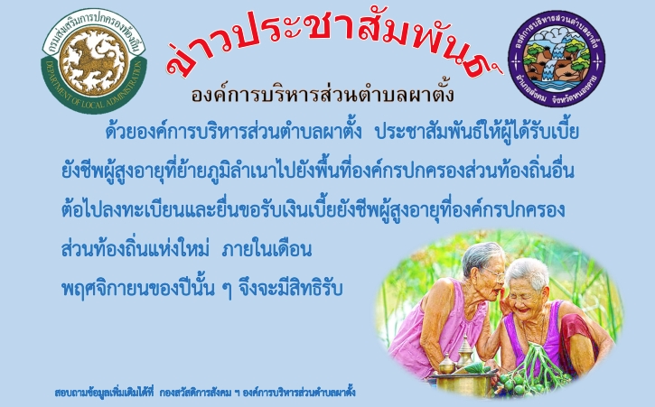 ประชาสัมพันการย้ายภูมิลำเนาของผู้สูงอายุที่รับเบี้ยยังชีพผู้สูงอายุ