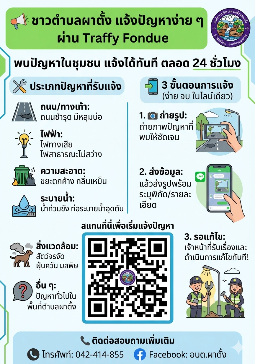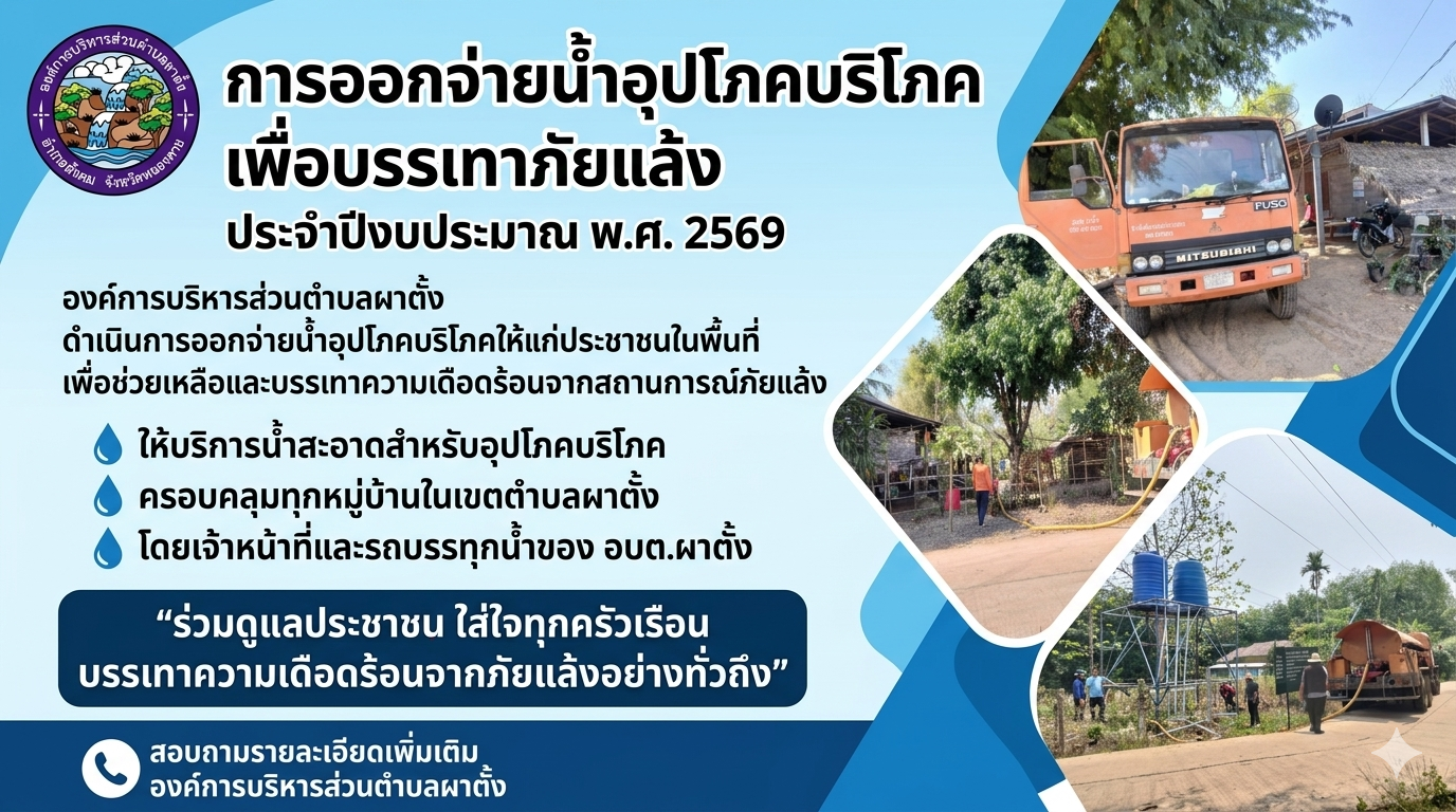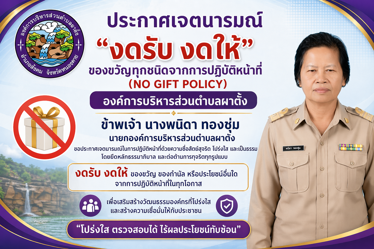 องค์การบริหารส่วนตำบลผาตั้ง อำเภอสังคม จังหวัดหนองคาย 43160 สอบถามข้อมูลโทร 042-424855 อีเมลกลาง. saraban_06430805@dla.go.th